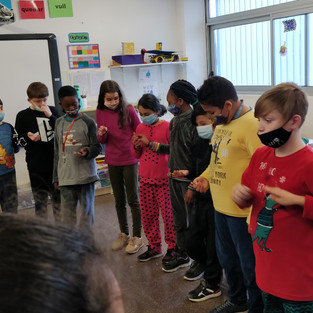 Els infants es col·loquen en cercle que simularà un circuit elèctric pel qual circulen electrons (representats amb cubs multilink). Amb aquest model, a més de treballar la simbologia dels elements d'un circuit elèctric bàsic i com aquests intervenen al circuit, entendrem com circulen els electrons per dins un cable elèctric. Amb tot això resoldrem les preguntes sobre Què és el corrent elèctric i la incògnita sobre la velocitat d'aquest.